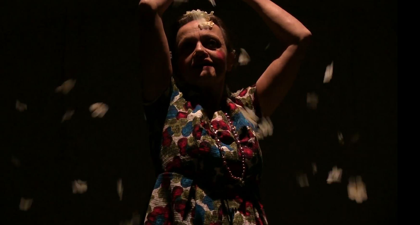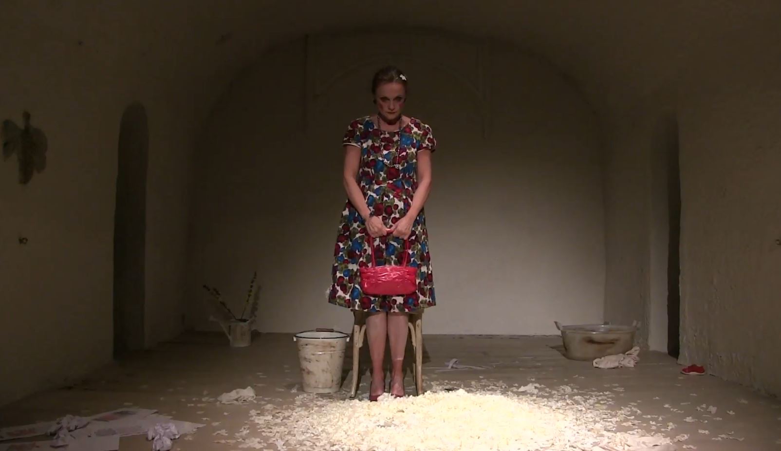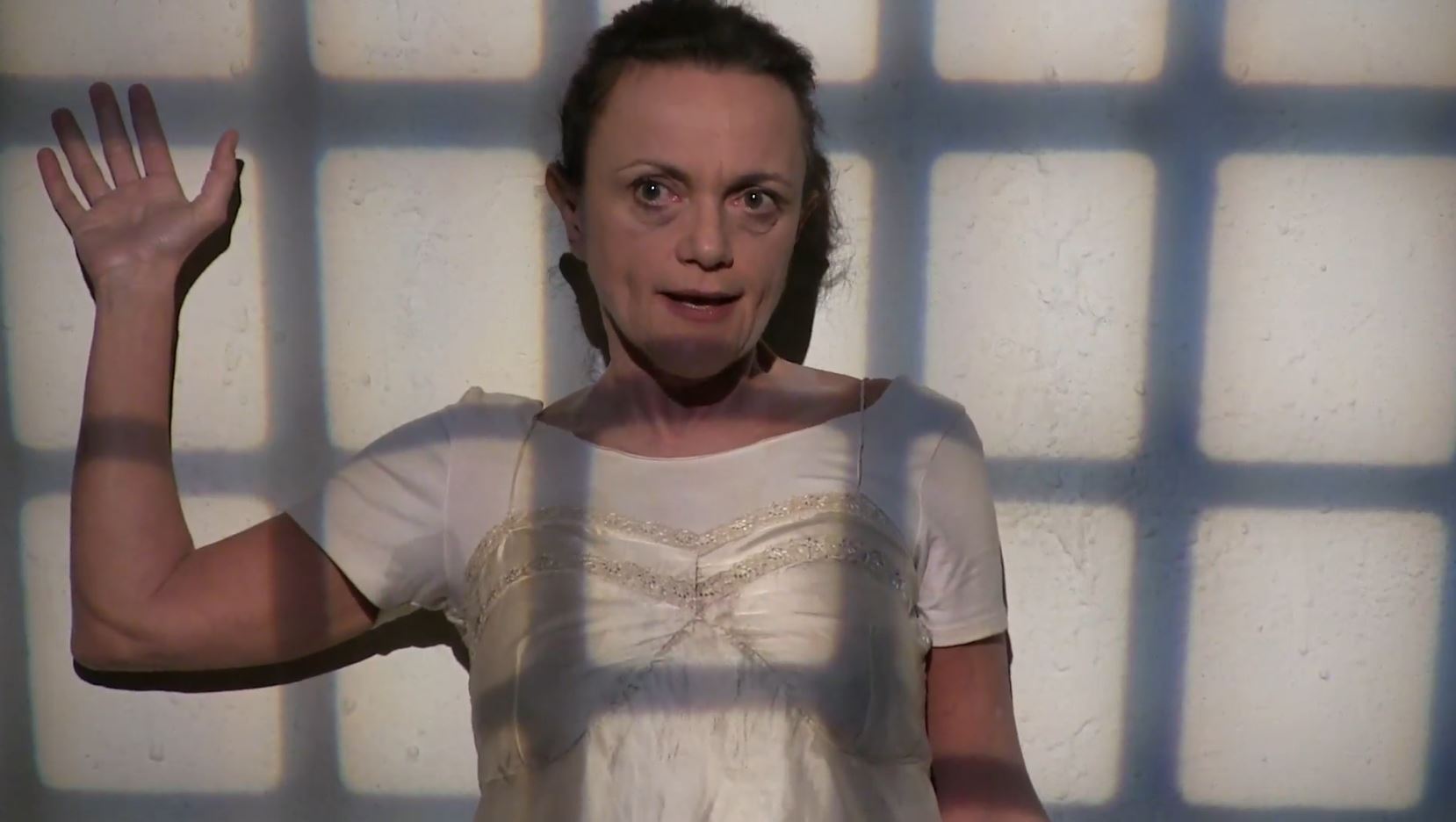 Lo spettacolo procede per arditi accostamenti, senza apparenti linee-guida, ma volutamente ancorato a vertiginosi scarti del pensiero delirante, e tuttavia proteso verso la luminosa liberazione finale. Il corpo dell’attrice -offeso dai drammi e dalle cure psichiatriche inflitte- rinuncia alle forme tradizionali e rassicuranti per perdersi in una “folle prigione bianca” dove ritrovare il senso della creazione artistica e delle verità personali più profonde. L’emarginazione dal mondo dei “sani”, dei “razionali” diviene uno spazio bianco pronto ad accogliere le più poetiche parole, le più carnali aspirazioni.