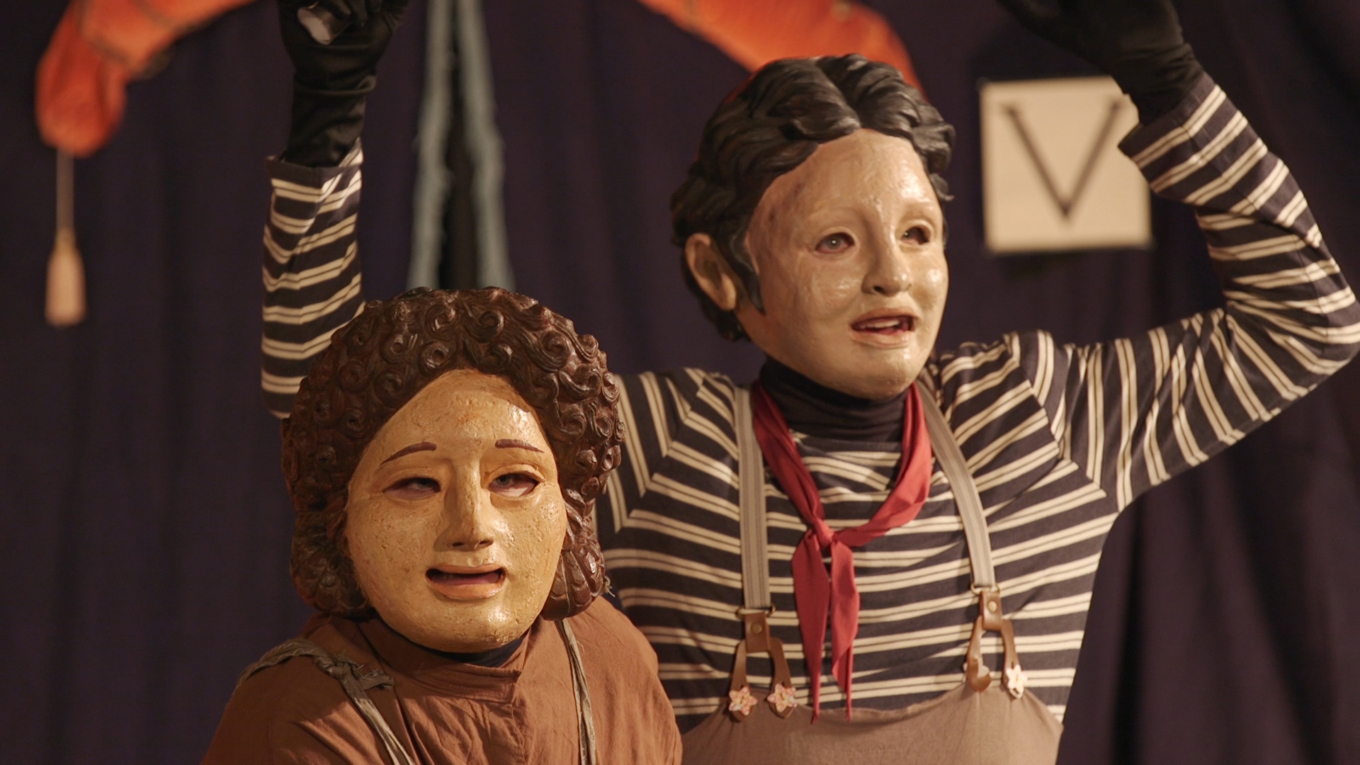 Le maschere, realizzate da Giancarlo Santelli, sono ricreate sul modello delle terracotte votive a Dioniso, rinvenute a partire dagli anni ’50 negli scavi della necropoli di Lipari, che riproducono fedelmente i tipi della commedia greca nuova di Menandro e per affinità quelli della palliata latina.