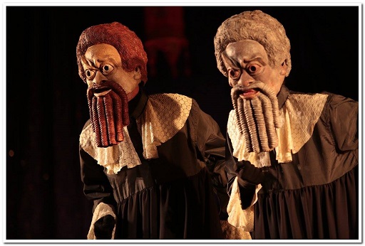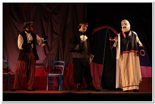 Nell’allestimento di Giancarlo Sammartano, quattro attori – attraverso l’uso delle maschere – interpretano, in un vorticoso e di per sé spassoso gioco teatrale, tutti i ruoli del testo.